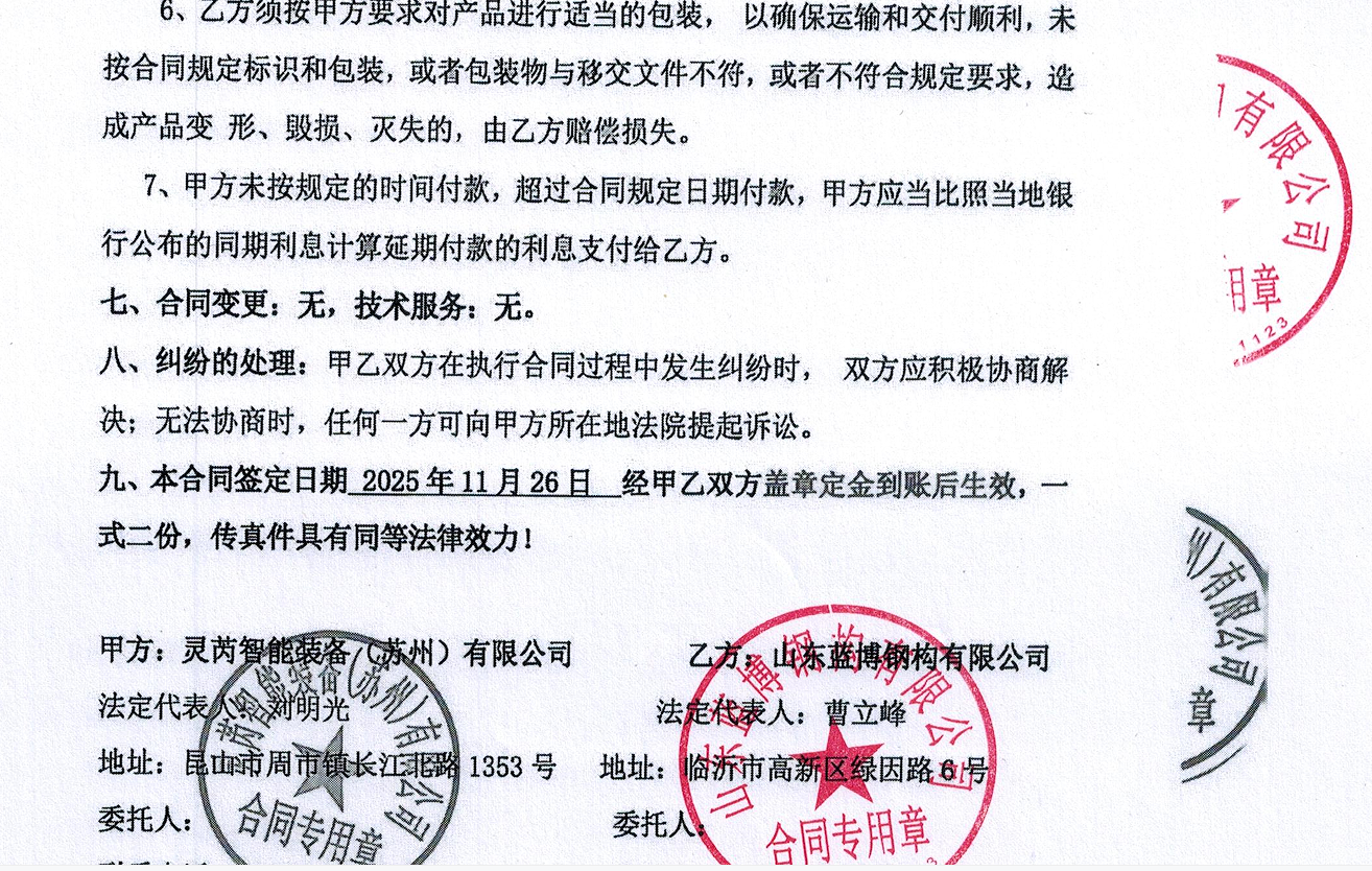 近日,蓝博钢构传来重磅喜讯 —— 成功与灵芮智能装备(苏州)有限公司达成合作,拿下其钢结构加工项目!