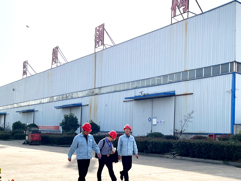 025年11月7日,恒新能源公司负责人翟总、安泰监理公司谢经理、天元建设集团有限公司第七建筑工程公司胡经理,临沂市唯八景观设计工程有限公司赵总一行4人就我公司承揽的钢结构工程加工项目到厂进行实地考察验收。公司董事长助理、钢构公司副总经理韩德兵接待了来访客人一行、生产厂长尹国勇、钢构公司车间主任刘继浩、钢构公司工程师房洪玉陪同。